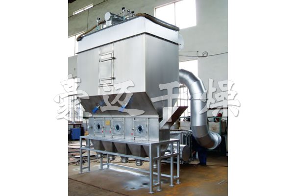洁净的热风经阀板分配进入床体内,从加料器进入的湿物料被热风形成沸腾状态。由于热风与物料广泛接触,增强了传热传质的过程,因此在较短时间内就可干燥。如用连续型,物料从床体的一头进入,经过几十秒至几分钟沸腾干燥,自动从床体另一头流出。本设备一般进行负压操作。