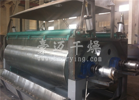 此次设备采用的是滚筒刮板干燥机,在我司滚筒刮刀设计方面 ,刮刀片夹具具有可调整性,保证足够的刚度和自身的密封性。在我司滚筒筒体设计方面 ,筒体为卷制焊接结构,整体消除应力处理,确保使用中不发生热变形;同时根据使用工况恶劣性质,轴头可采用热套结构,比焊接结构大大提高使用寿命。