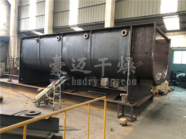 空心桨叶干燥机是一种以热传导为主的卧式搅拌型连续干燥设备。因搅拌叶片形似船桨,故称桨叶干燥机,国外也称槽型干燥机或搅拌干燥机。因该设备干燥所需要的热量依靠热传导间接加热,因此干燥过程不需或只需少量气体以带走湿份。极大地减少了被气流带走的这部分热量损失,提高了热量利用率,是一种节能型干燥设备。桨叶干燥机广泛应用于石油化工、化工、冶金、食品、医药、农药等行业中粉状、粒状、滤饼状、浆液状物料的干燥。